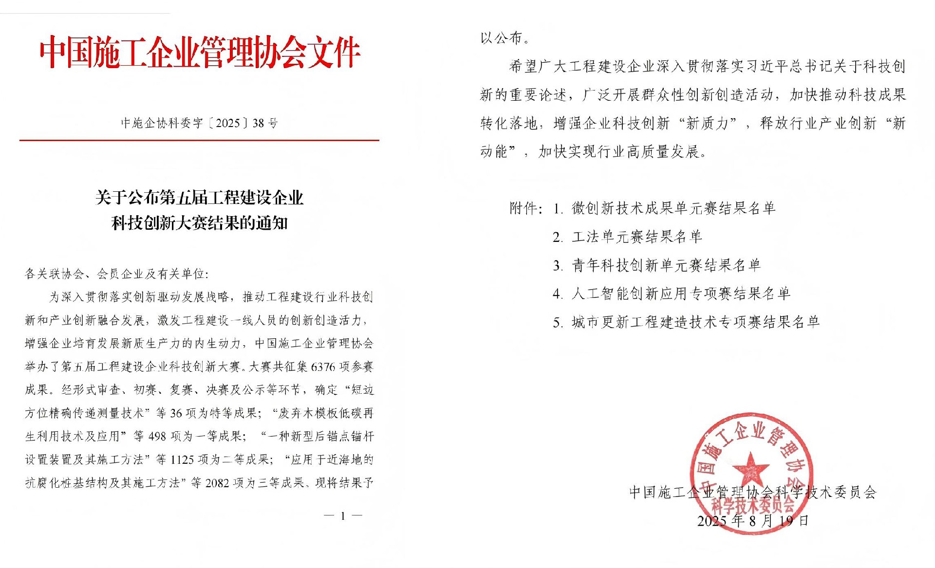 • 2025-08-27 集團(tuán)在第五屆全國工程建設(shè)企業(yè)科技創(chuàng)新大賽中斬···
